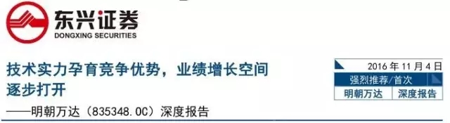 本次东兴证券发布的投资评级深度报告显示,新一代数据安全领导厂商明朝万达,凭借先发优势与深厚技术积累,近年在金融、政府领域市场拓展成效显著。目前公司产品在政府、金融、电信运营商等关键行业得到大规模应用,形成云安全、移动安全、大数据安全全面协同发展局面,公司近年营收增速显著。