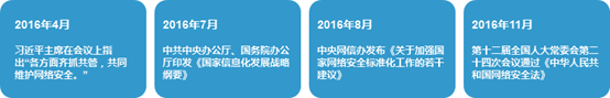 信息安全成为国家战略的重要组成部分,我国一直高度重视相关产业的发展,2016年,国家先后出台一系列信息安全相关政策法规,为行业的健康发展保驾护航。作为信息安全的核心组成部分,数据安全也将以法律法规为准绳,并以此指引自身的发展方向。